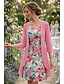 Naisten Mini mekko Rento mekko Tyylikäs Vapaa-aika Loma Päivittäin Normaali Kukka Geometrinen 3/4 hiha Lovitettu kaula Punastuvan vaaleanpunainen Kesä