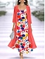 Naisten Midimekko Rento mekko Painatus mekko Vintage afrikkalainen Päivittäin Hiekkaranta Viikonloppu Normaali Kukka Kuvitettu 3/4 hiha Tiukka pyöreä kaula-aukko Rubiini Fuksia Ruskea Kevät Syksy