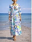 Naisten maxi-mekko pellava-tyyppinen kesämekko shift-mekko loma rento ranta juhlat löysä istuvuus kukkakuva lehdet 3/4 pituiset hihat pyöreä kaula-aukko sininen valkoinen harmaa kesä kevät syksy
