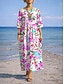 Naisten Mekkosetti A linjainen mekko Loma Vapaa-aika Kukka Kuvitettu Monitaso Painettu Maksimekko 3/4 hiha V kaula-aukko Päivittäin Hiekkaranta Purppura Apila Khaki Kesä Kevät Normaali
