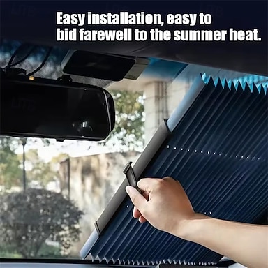 sisäänvedettävä auton tuulilasin aurinkosuoja, universaali harmonikka-laskostettu aurinkosuoja etuikkunaan estää UV-säteitä &lämpö, helppo imukuppiasennus autokaihdin autoon, maastoautoon,