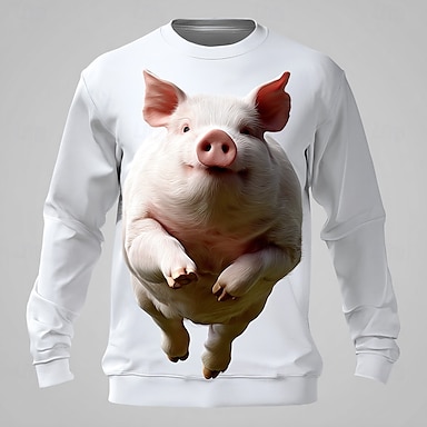 Miesten Hauska Possu College Vapaa-aika Pitkähihainen Tiukka pyöreä kaula-aukko Valkoinen 1 Valkoinen Crewneck 3D Kaikki vuodenajat Suunnittelija S M L XL XXL XXXL
