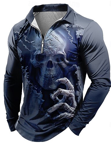 Kuolleiden päivä Miesten Pääkallot Polo Pitkähihainen Poolopaidat Kauluskäänne Vapaa-aika Tumma Arki-asut Festivaalin asu 3D-tulostus Quarter Zip Polo Kevät Syksy Talvi Sininen Ruskea Apila