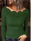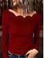 Naisten Pusero Pitsi Tilkkutäkki Yhtenäinen väri Tyylikäs Perus Vapaa-aika Pitkähihainen Olkaimeton Tavalliset topit Päivittäin Musta Valkoinen Rubiini Laivaston sininen Apila Kevät Syksy