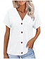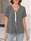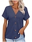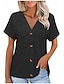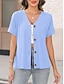 Naisten T-paita Napit Tavallinen Muoti Tyylikäs Klassinen Lyhythihainen V kaula-aukko Tavalliset topit Päivittäin Bile Viikonloppu Sininen Musta Valkoinen Punastuvan vaaleanpunainen Laivaston sininen