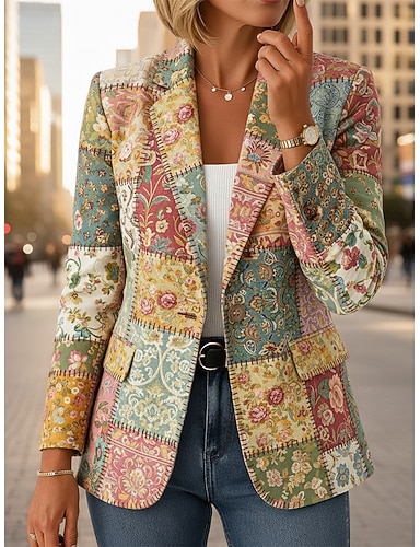 Naisten Bleiseri Pidä lämpimänä Mukava Tasku Napit Painettu Vintage Päivittäin Vapaa-aika Kukka Muodollinen Toimisto Kausaliteetti Yksirivinen Normaali Lovikäänne Normaali Pitkähihainen