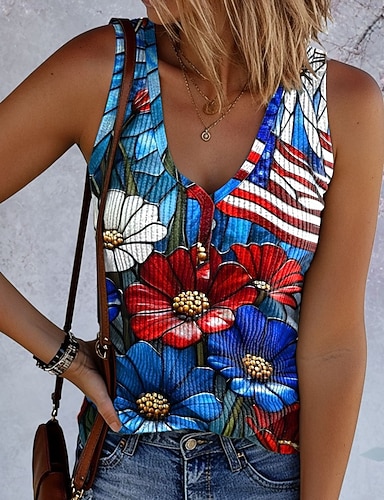 Amerikan itsenäisyyspäivä Naisten Hihaton Painettu Kuvitettu Lippu Amerikan lippu Tyylikäs Klassinen Vapaa-aika Hihaton Hihaton V kaula-aukko Pitkät topit Päivittäin Sininen Rubiini Kesä Kevät