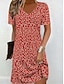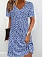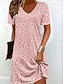 Naisten Mini mekko Kesämekko Tpaitamekko A linjainen mekko Loma Vapaa-aika Boheemi Hiekkaranta Bile Normaali Kukka Kuvitettu Lyhythihainen V kaula-aukko Sininen Punastuvan vaaleanpunainen Rubiini
