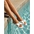 Naisten pilkulliset rusettikiilakorkoiset sandaalit - trendikkäät kirkkaat kiilakorkoiset sandaalit espadrille-tyylisellä pohjalla ylellisiin lomakohteisiin, hotellin uima-altaan reunalla
