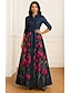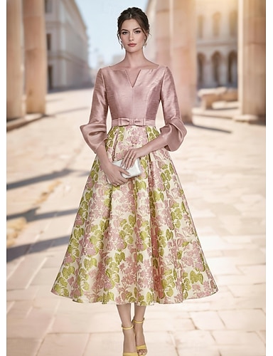 A-linja Nilkkapituinen Polven yli Cocktailmekot Juhlamekot Tyylikäs Vintage Kukka-aihe 3/4 hiha V kaula-aukko Puutarhajuhlat Häät Tasku Tafti Jakardi Laskostettu selkä kanssa Kukkapainatus