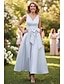 A-linja Nilkkapituinen Juhlamekko Coctail-asu Häävieraspuku Morsiammen äidin asu Hihaton V kaula-aukko Tyylikäs Yksinkertainen Häävieras Puolivirallinen Satiini kanssa Rusetti(rusetit)