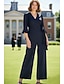 Kaksiosainen Housupuku Nilkkapituinen Morsiammen äidin asu Pitkähihainen V kaula-aukko Tyylikäs Vintage Yksinkertainen Muodollinen Häävieras Satiini Joustava kangas kanssa Rusetti(rusetit) Rypytetty