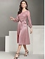A-linja Polven yli Juhlamekko Coctail-asu Häävieraspuku Morsiammen äidin asu 3/4 hiha V kaula-aukko Tyylikäs Muodollinen Häävieras Hääjuhla Satiini kanssa Rusetti(rusetit) Rypytetty Solid Color