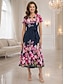 A-linja Kokopitkä Paitamekko Häävieraspuku Muodollinen mekko Morsiammen äidin asu Puolihiha Paitapuserokaula-aukko Tyylikäs Vintage Häät Muodollinen Nylon kanssa Kukkapainatus Rusetti(rusetit)