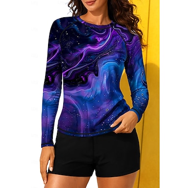 Naisten Normaali Rashguard-uimapuku Ihottumissuoja Kukkakuvioinen uimapuku Abstrakti Marmori 2-osainen Irrotettava toppaus Boyleg-alushousut UV-aurinkosuojaus UPF50+ Elastinen Pitkähihainen Uima-asut