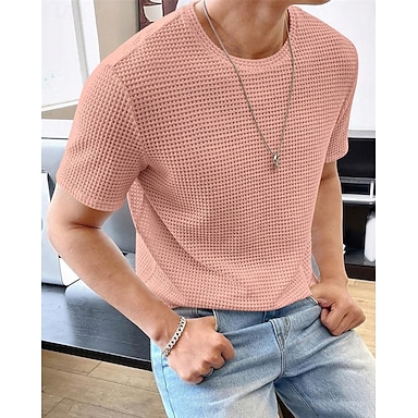 Miesten Vohveli tee T-paita T-paidat Lyhythihainen paita Lyhythihainen Tiukka pyöreä kaula-aukko Kesä Tavallinen Muoti Suunnittelija Perus Jakardi Loma Katu Bile Punastuvan vaaleanpunainen Khaki Kahvi