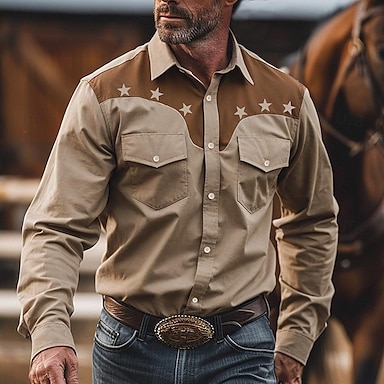 Miesten Tähdet Paita Länsimainen paita Cowboy paita Pitkähihainen Vintage länsimaista tyyliä ulko- Työ Rento / arki Syystalvi Sänkyjen avaus Napit Painettu Khaki