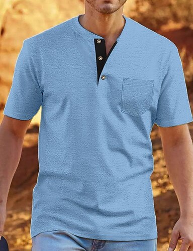 Miesten Kuvitettu Vintage Pesty Puuvillainen paita T-paidat Henley toppi Lyhythihainen Vintage Suunnittelija Vapaa-aika Kausaliteetti Päivittäin ulko- Kesä Kevät Kaikki vuodenajat Vaalean sininen