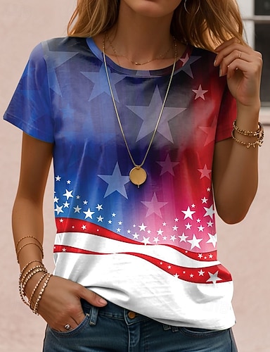 Amerikan itsenäisyyspäivä Naisten T-paita Painettu Kuvitettu Kirjain Vintage Tyylikäs Klassinen Lyhythihainen Tiukka pyöreä kaula-aukko Tavalliset topit Päivittäin Sininen Purppura Apila Khaki Kes