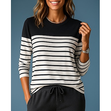 Naisten Raita Pusero Vapaa-ajan topit Syksy Pitkähihainen Urheilu- ja treenivaatteet Muoti Ulkoilu Matkailu Musta Valkoinen Punainen Urheiluasut Urheiluvaatteet