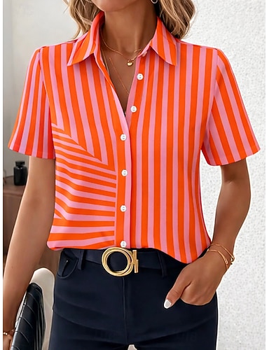 Naisten Paita Napit Painettu Kuvitettu Geometrinen Vintage Tyylikäs Moderni Lyhythihainen Paitapuserokaula-aukko Tavalliset topit Päivittäin Sininen Punastuvan vaaleanpunainen Oranssi Apila Kesä Kevät