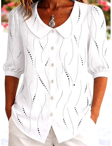 Naisten Paita Napit Painettu Kuvitettu Geometrinen Vintage Tyylikäs Moderni Pitkähihainen Paitapuserokaula-aukko Tavalliset topit Päivittäin Sininen Valkoinen Rubiini Kevät Talvi