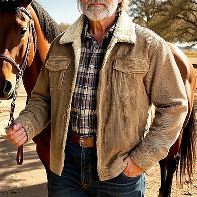 Miesten Talvitakki Vakosamettitakki Fleecetakki Rento takki Loma Päivittäin Pidä lämpimänä Tasku Fleece Syksy Talvi Tavallinen Muoti Katutyyli Kauluskäänne Normaali Musta Khaki Kahvi Harmaa Jackets