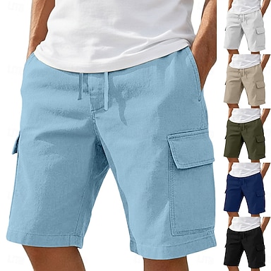 Miesten Pellavahousut Housut Kesähousut Roikkuvat housut Rantahousut Kurenauha Joustava vyötärö Suora jalka Tavallinen Mukavuus Hengittävä Täyspitkä Kausaliteetti Päivittäin Pyhäpäivä Loma Muoti