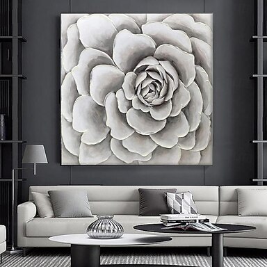käsintehty öljymaalaus kankaalle seinätaidekoriste moderni abstrakti mustavalkoinen ja harmaa kukka kodin sisustukseen rullattu kehyksetön venyttämätön maalaus