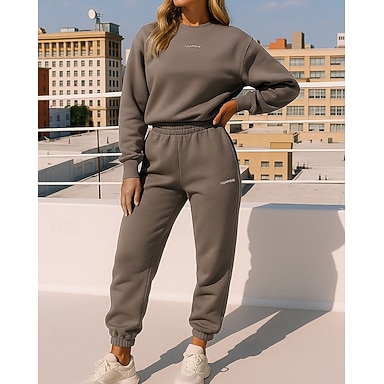 Naisten Verryttelypuku Veryttelyhousut Urheiluasut taskulla Yhtenäinen Liikunta-asut Syystalvi Tumman harmaa Valkoinen Ulkoilu Matkailu Urheilu Muoti Pitkähihainen Urheilu Urheiluvaatteet
