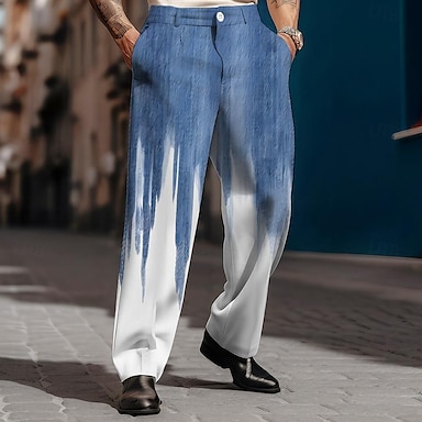 Miesten Kuvitettu Puvunhousut Keskivyötärö Business Casual Muodollinen Arkikäyttö Tasku Suoralahkeiset housut Kesä Kevät Syksy 3D-tulostus Sininen
