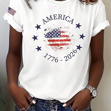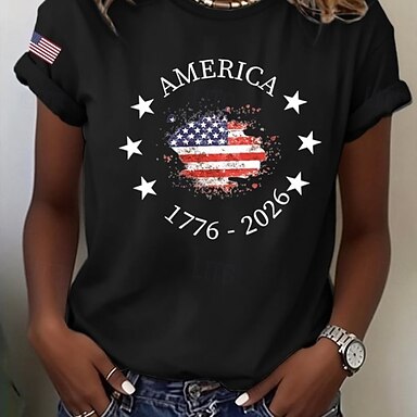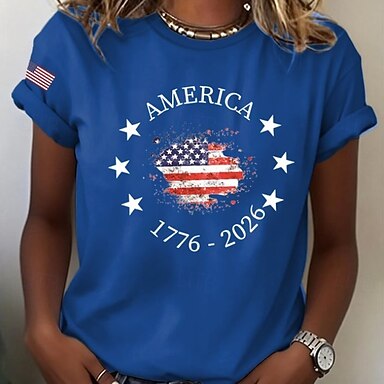Amerikan itsenäisyyspäivä Naisten T-paita Painettu Kuvitettu Kirjain Vintage Tyylikäs Klassinen Lyhythihainen Pyöreä kaula-aukko Tavalliset topit Päivittäin Sininen Musta Valkoinen Rubiini Kesä Kevät