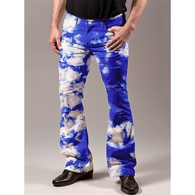 Retro / vintage 1970 luku Groovy Bell Bottom Housut Leveälahkeiset housut Disko Keski vyötärö Taivas Psykedeelinen Naamiaispuku Miesten Halloween Karnevaali Loma musiikkifestivaali Festivaali