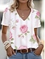 Naisten T-paita Painettu Kukka Kuvitettu Böömi Vintage Tyylikäs Lyhythihainen V kaula-aukko Tavalliset topit Päivittäin Valkoinen / Pinkki Kesä Kevät