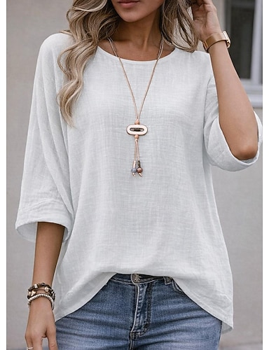Naisten Ylisuuri T-paita T-paidat Yhtenäinen väri Vintage Tyylikäs Vapaa-aika 3/4 hiha Tiukka pyöreä kaula-aukko Tavalliset topit Päivittäin Bile Valkoinen Punastuvan vaaleanpunainen Rubiini Apila