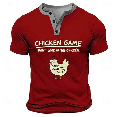 Miesten lyhythihainen Henley T-paita hauska kana-peli älä katso kanaa -graafinen T-paita
