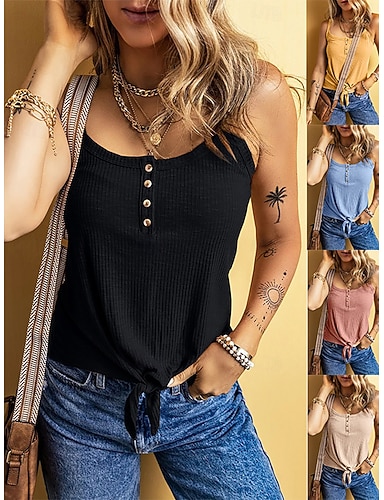 Naisten Hihaton Hihaton paita T-paita Napin edessä Yhtenäinen väri Muoti Klassinen Vapaa-aika Hihaton U kaula-aukko Tavalliset topit Päivittäin Bile Viikonloppu Rust Red Musta Keltainen Armeijan