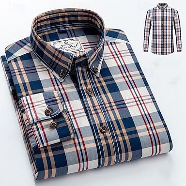 Miesten Paita Kesä paita Rento paita Rantapaita Button Up paita Rubiini Laivaston sininen Kuninkaallinen sininen Sininen Oranssi Pitkähihainen Skottiruutukuvio Kauluskäänne Loma Havaijilainen Painike