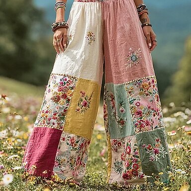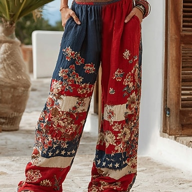 Naisten Röyhkeä Loma Vintage Etninen tyyli Täyspitkä Korka vyötärö Kukka Kuvitettu Nopea kuivuminen Hengitettävyys Pehmeä Joustamaton Kausaliteetti ulko- Loma Rubiini Purppura Kesä Kevät