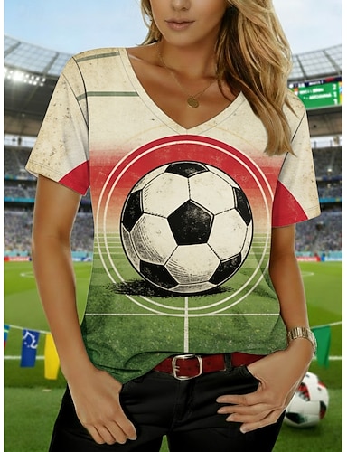 Naisten T-paita Painettu Kuvitettu Jalkapallo Tyylikäs Klassinen Vapaa-aika Lyhythihainen V kaula-aukko Tavalliset topit Päivittäin Urheilu Bile Sininen Apila Kesä Kevät