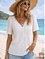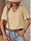 Naisten T-paita Nauhanreikä Tavallinen Muoti Tyylikäs Klassinen Lyhythihainen V kaula-aukko Tavalliset topit Päivittäin Bile Viikonloppu Musta Valkoinen Keltainen Punastuvan vaaleanpunainen Apila