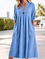 Naisten Midimekko A linjainen mekko Loma Vapaa-aika Loose Fit Tavallinen 3/4 hiha V kaula-aukko Sininen Punastuvan vaaleanpunainen Apila Khaki Kesä Kevät Syksy