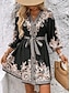Naisten Maksimekko Rento mekko Boho Chic Mekot Boho-mekko Böömi Tyylikäs Vapaa-aika Loma Päivittäin Hiekkaranta Loose Fit Kuvitettu 3/4 hiha V kaula-aukko Musta Rubiini Apila Beesi Kesä Kevät