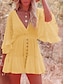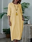 Naisten Midimekko Puuvillaiset pellavamekot Väljä mekko Rento mekko Tyylikäs Muoti Moderni Päivittäin Loma Bile Loose Fit Tavallinen 3/4 hiha Tiukka pyöreä kaula-aukko Keltainen Punastuvan