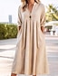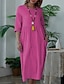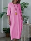 Naisten Midimekko Rento mekko Puuvillapellavamekko A linjainen mekko Perus Vapaa-aika Loma Päivittäin Normaali Tavallinen 3/4 hiha Paitapuserokaula-aukko Punastuvan vaaleanpunainen Apila Kesä Kevät