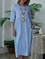 Naisten Mekkosetti Väljä mekko Tyylikäs Tavallinen Tasku Maksimekko 3/4 hiha Tiukka pyöreä kaula-aukko Päivittäin ulko- Sininen Valkoinen Punastuvan vaaleanpunainen Kesä Kevät Loose Fit