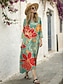 Naisten Pitkä mekko Maxi mekko Rento mekko Painatus mekko Muoti Moderni Päivittäin Hiekkaranta Viikonloppu Normaali Kukka 3/4 hiha V kaula-aukko Vaalean vihreä Tumman vihreä Apila Kevät Syksy
