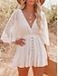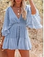 Naisten Mini mekko Valkoinen mekko Pitsimekko Rento mekko Muoti Moderni ulko- Loma Bile Normaali Tavallinen 3/4 hiha V kaula-aukko Sininen Vaalea vaaleanpunainen Musta Valkoinen Kesä Kevät
