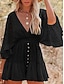Naisten Maksimekko 100% Cotton Väljä mekko Paitamekko Valkoinen mekko Vapaa-aika Päivittäin Loma Loose Fit Tavallinen 3/4 hiha V kaula-aukko Musta Valkoinen Punastuvan vaaleanpunainen Laivaston
