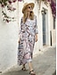 naisten vapaa-ajan mekko kukkaprintti v kaula pitkä mekko maxi mekko etninen rento päiväloma 3/4-pituiset hihat kesä
